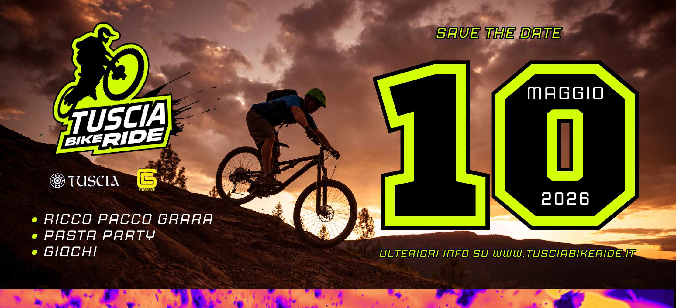 La nuova edizione di Tuscia Bike Ride si terrà il 10/05/2026. Il luogo di partenza e arrivo è VITERBO - parcheggio esterno Centro Commerciale Tuscia, via tangenziale Ovest snc.